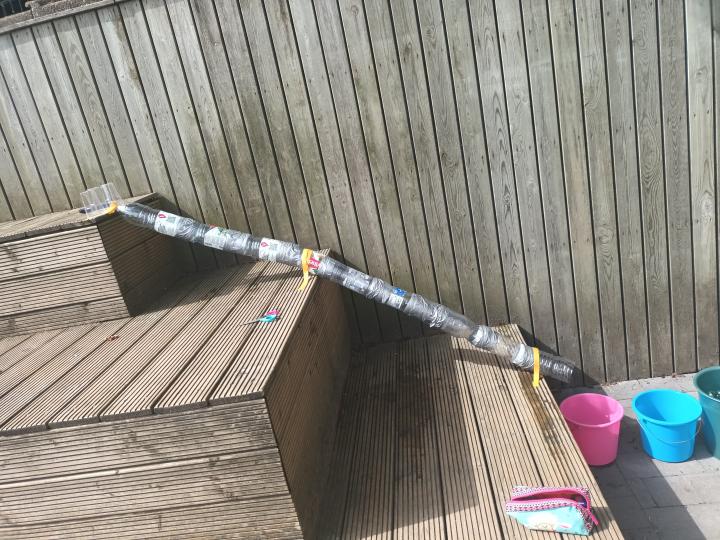 Hier worden de kinderen uitgedaagd om zelf een aquaduct te bouwen.